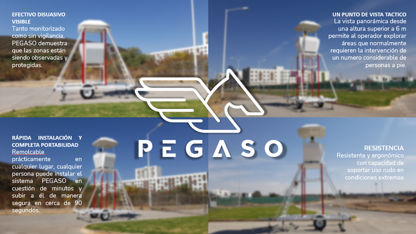El reforzado y resistente PEGASO es una plataforma de vigilancia móvil que proporciona seguridad y comodidad al operador mientras es capaz de soportar diversas condiciones climáticas. Con una instalación portátil y rápida, ofrece una perspectiva estratégica y un disuasorio simbólico.