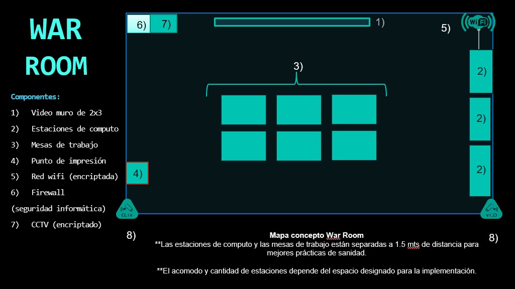 - Diseño, implementación y puesta en marcha de un cuarto de guerra con los elementos necesarios (War Room).