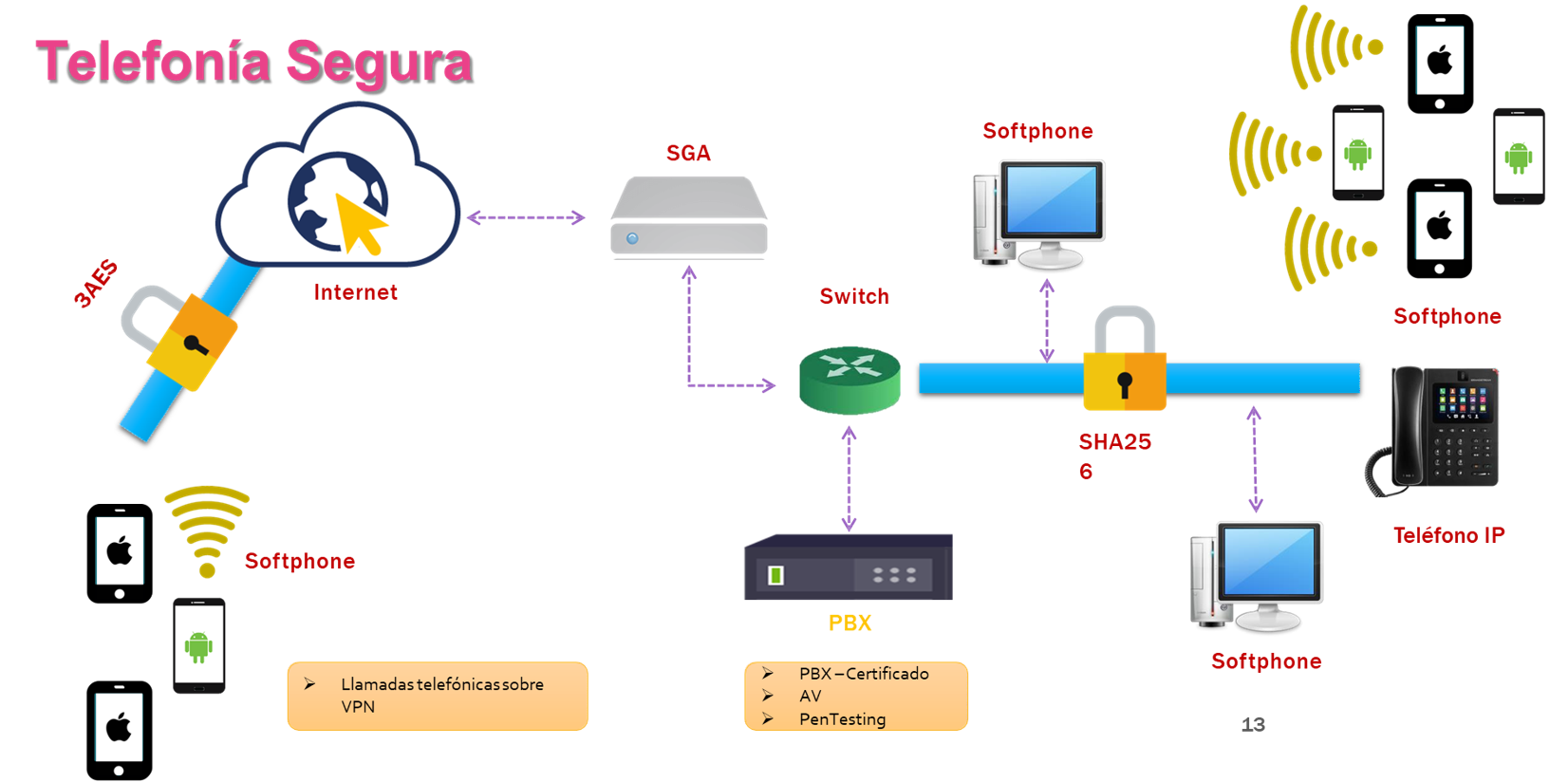- Establecimiento de una red de comunicación segura (Telefonía Segura).
