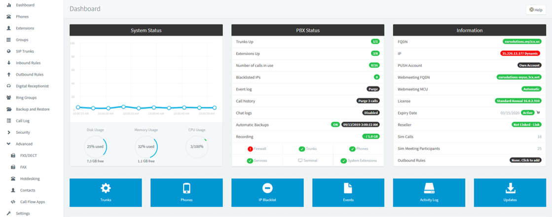 En la consola de administración podremos monitorear todos los recursos del PBX y de los eventos para verificar que las conexiones siempre sean 100% seguras.